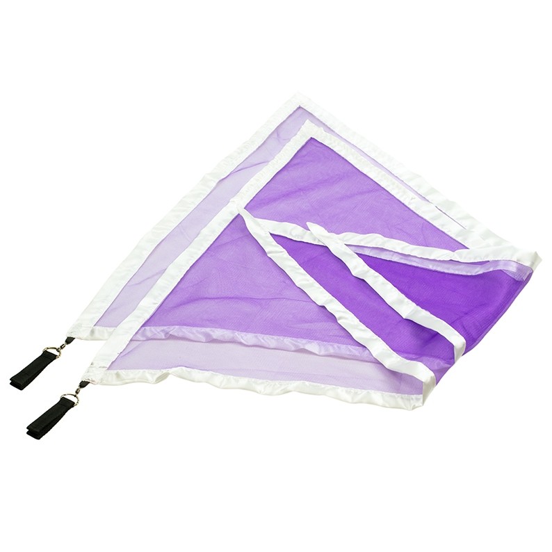 Introducing the lovely Juggle Dream Flag Poi, this is a pair of Poi that have a large trailing piece of fabric similar to a flag. The big-block area of colour gives this Poi a substantial visual impact. Ideal for when your audience is in a large arena or sitting far from the stage where you are performing. These are cleverly weighted along the leading edge, to make them very smooth when flying and very easy to use. Double-loop handle.Flag dimensions: 60cm / 60cm / 85cm