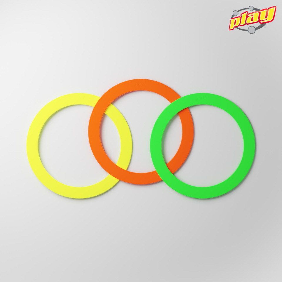 New standard size juggling ring from PLAY. Thanks to a brand new hot chamber injection mold, the finish quality and the strength of this ring are outstanding. Both the inner and outer profiles are perfectly round to minimize friction and make them easier and less painful to catch. The outer diameter is 327 mm versus 320 mm for the previous version, while the inner diameter is just a few mm larger. The weight is still 110 g.