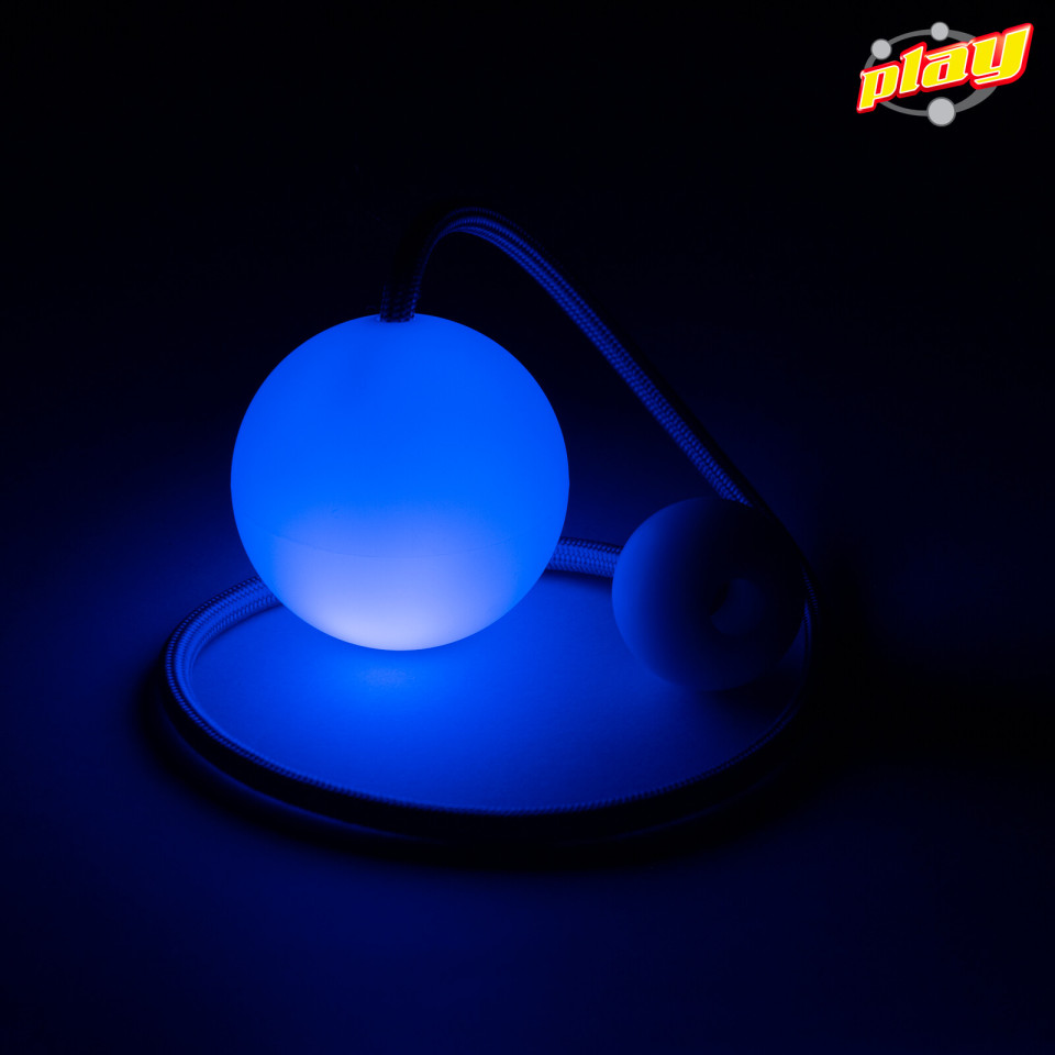 Pair of LIGHT-UP POI made with the best 6 mm diameter static cord and our iconic silicone knobs. The new shell of the balls, produced by PLAY, is softer for a fantastic grip and to withstand even the most violent impacts, including on asphalt. The light diffusion is simply perfect. With this rechargeable and multi-program unit, you can choose from 6 colors plus 2 FADE programs that transition from one color to another at different intervals. Double-headed USB charging cable included in the price.ball diameter 70mm ,150 gr.